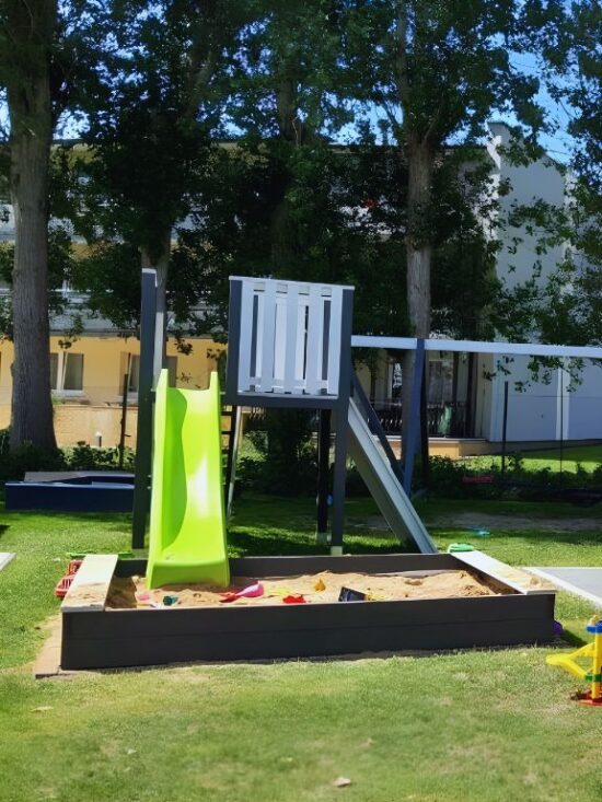 Family Dreams to nie tylko domki letniskowe w Sarbinowie – to przestrzeń, w której dzieciństwo nabiera barw. Sercem naszego obiektu jest bezpieczny, zielony teren rekreacyjny, usytuowany z dala od ulicy, pod kojącym cieniem drzew.